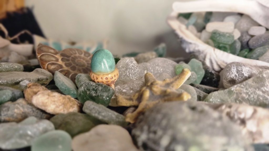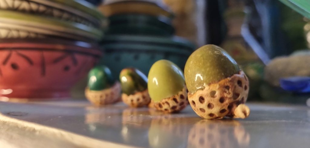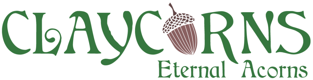 Acorns made of clay – hand made in Glastonbury UK by artist Matt Witt.